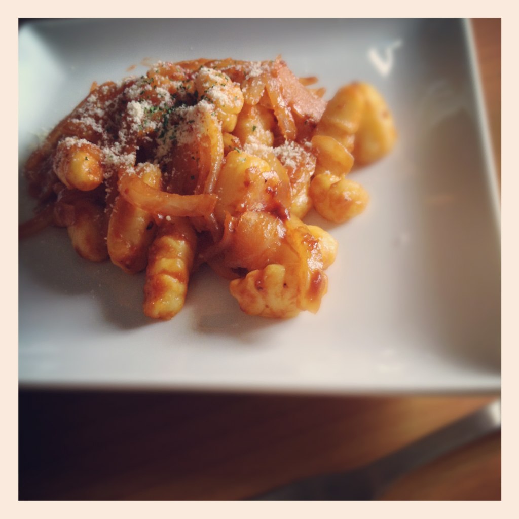 深夜にじゃがいもから作ったニョッキ、もちもちでおいしいです。