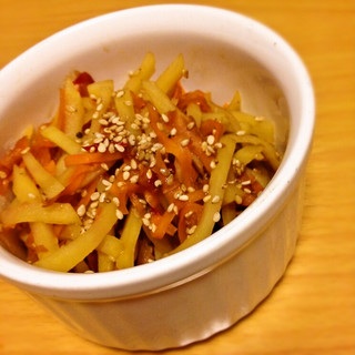 人参の皮ももらったので、じゃがいもと合わせてきんぴらにしました。
