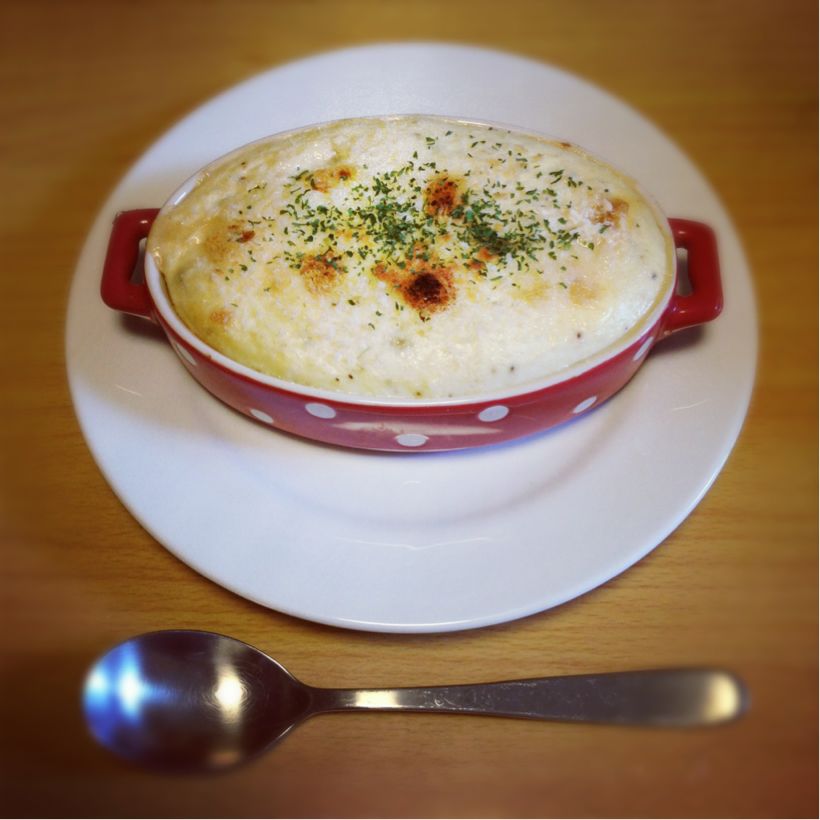 豆腐と豆乳で作ったホワイトソースもどきでグラタンを作りました。