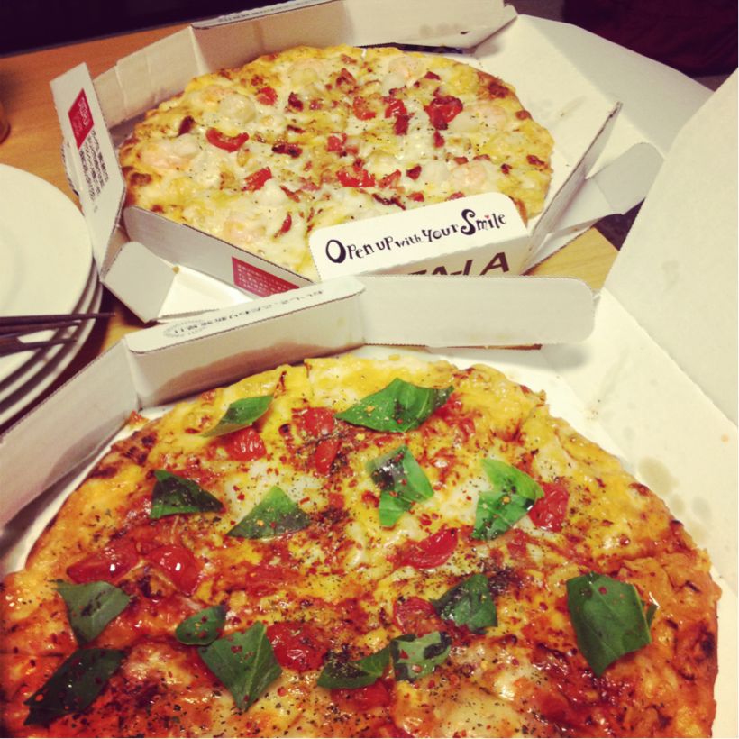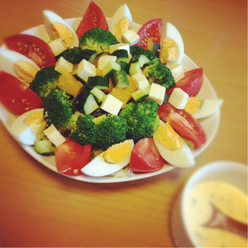 ベーコン、ブロッコリー、トマト、きのこ、納豆、チーズ、卵白を入れました。